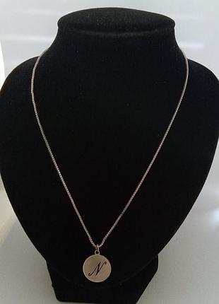 Подвес с буквой N / двусторонний / на цепочке. Украшение выполнено из ювелирного сплава серебряного цвета. Буква - гравировка украшена черной эмалью. Цепочка длиной 45 см, удлинительная цепочка 6 см. Подвес около 1,5 см.