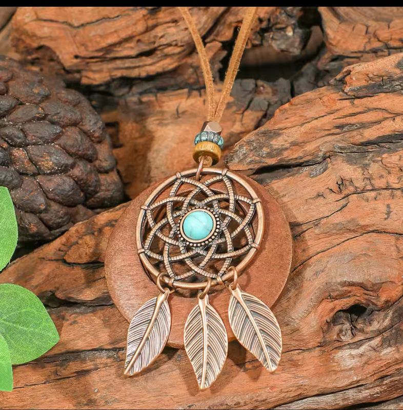 Оригинальная стильная деревянная подвеска на шею "Ловец снов" 🪶🪶🪶 в бохо стиле Довжина шнурочка 40 см, сам кулон 6 см.