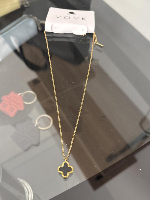 Жіноча підвіска цепочка золотистого кольору чотирилистник з одної сторони білий з іншої чорний