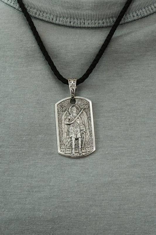 Срібна чоловіча ладанка Янгол Охоронець Срібло 925 проба Вага 11.01 гр. Довжина з петлею 50 мм, розмір 38*24 мм