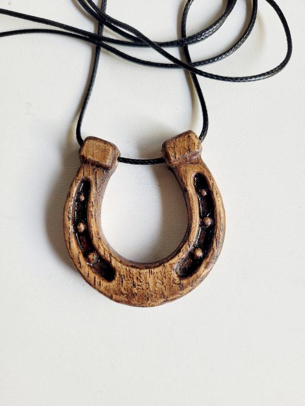 Подвеска изготовлена из дерева дуба, покрытое маслом-виском, и имеет шелковистую поверхность. Подвеска продается в изысканном футляре из дерева, с наполнителем из древесной стружки. Высота 40 мм ширина 38 мм товщина 9 мм Подкова, как талисман, в украинской традиции считается символом удачи, счастья и защиты. Ее часто вешают над входными дверьми, и положение подковы имеет значение: рожками книзу - для защиты от зла, рожками кверху - чтобы "чаша была полной" и в дом приходило счастье и изобилие. Приятный подарок на любимое событие.