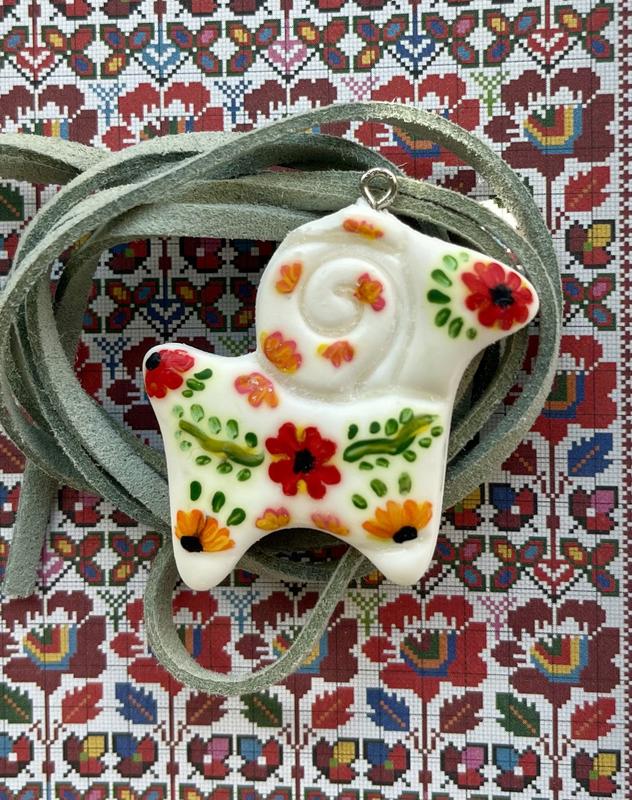 Прикраса з полімерної глини «Баранець» Підвіска ручної роботи 🕊 Матеріал: полімерна глина Розпис: акрил, покриття лаком Шнурок у комплекті Єдиний екземпляр ✅