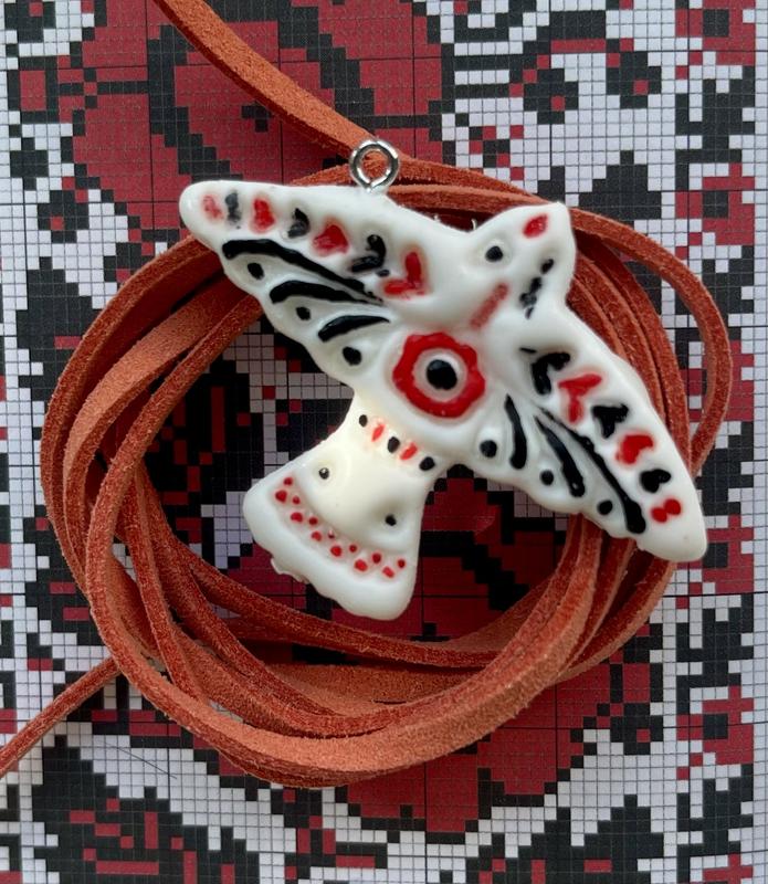 Прикраса з полімерної глини «Пташка» Підвіска ручної роботи 🕊 Матеріал: полімерна глина Розпис: акрил, покриття лаком Шнурок у комплекті Єдиний екземпляр ✅