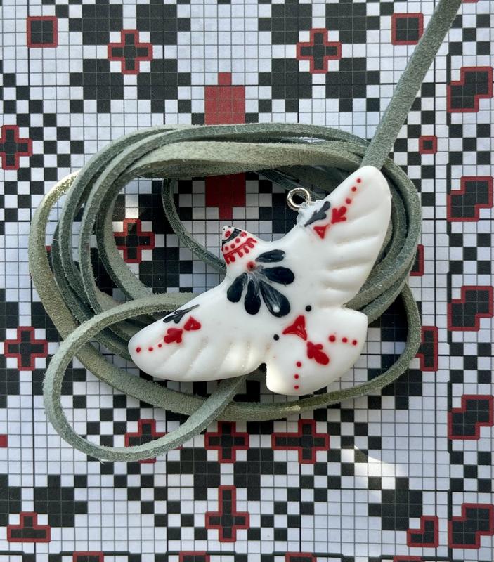 Прикраса з полімерної глини «Горлиця» Підвіска ручної роботи 🕊 Матеріал: полімерна глина Розпис: акрил, покриття лаком Шнурок у комплекті Єдиний екземпляр ✅