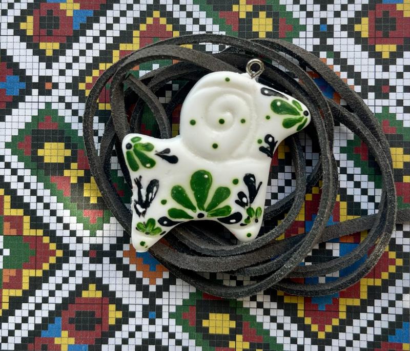Прикраса з полімерної глини «Баранець» Підвіска ручної роботи 🕊 Матеріал: полімерна глина Розпис: акрил, покриття лаком Шнурок у комплекті Єдиний екземпляр ✅