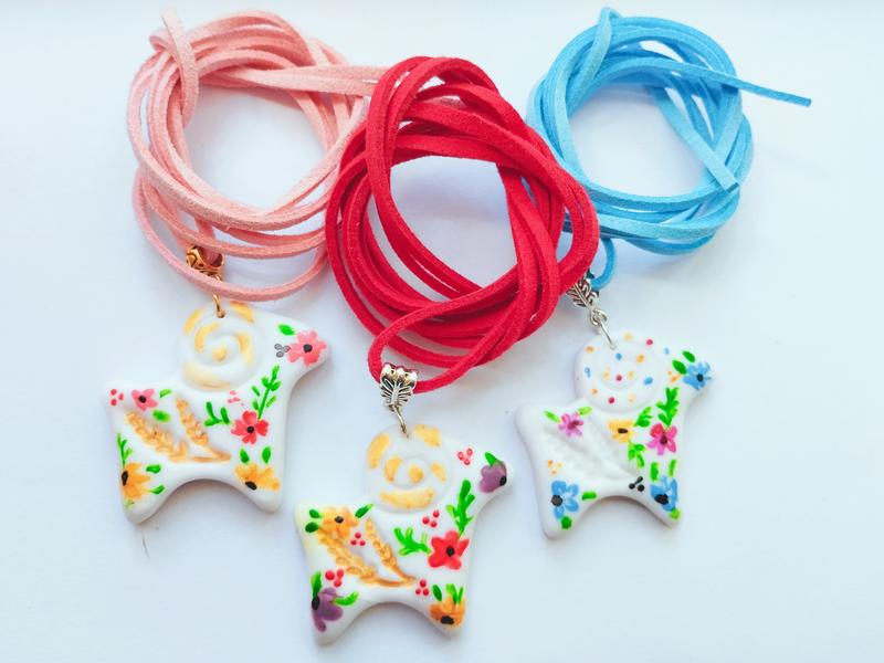 Подвеска изготовлена из полимерной глины. Мягкий шнурок (на выбор) с эко замши длиной 1 -1,2 м позволяет регулировать длину подвески под любой образ. Благодаря многообразию вариантов дизайна, это украшение станет уникальным дополнением к вашему стилю или отличным подарком для особого человека. Цвет шнурочка: белый,молочный,черный, красный,желтый, лазурный,тиффани нежно- розовый,сиреневый, фуксия, светло- сиреневый. Дополнительный шнурочек + 30 грн