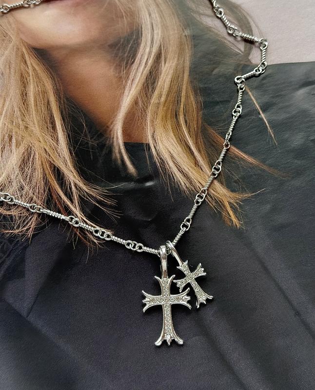 Стильна підвіска з хрестами – вишуканий акцент, який доповнить будь-який Твій образ! Можна носити на шиї, або начепити на улюблену сумку🖤 🖊️підвіска двостороння, з іншої сторони хрестів камінчики 🖊️матеріал: нержавіюча сталь, не темніє та не боїться води! 🖊️є в сріблі та золоті 🖊️довжина - 50 см В наявності багато різноманітного товару від Chrome Hearts, дивись інші наші оголошення🔥 Наш асортимент регулярно оновлюється, тому підписуйтесь на наш магазин та залишайтесь в тренді разом з нами🫶🏼