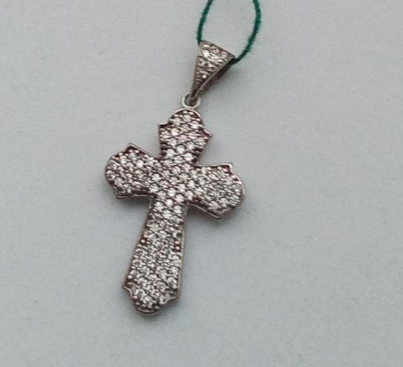 Подвес крест серебро 925, покрытие родий. Украшение Украинского производителя "Каштан". Вставки куб.цирконий. Вес 1,96 гр. Украшение имеет тавро (Проборная палата Украины) и бирку производителя.