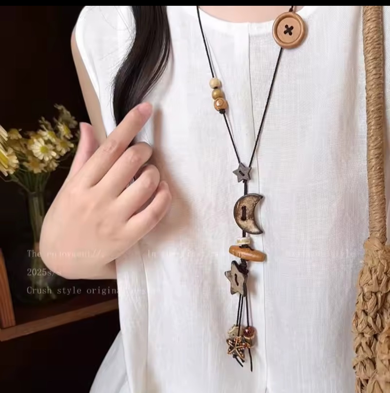 Оригинальная подвеска на шею в бохо стили месяц и звезда