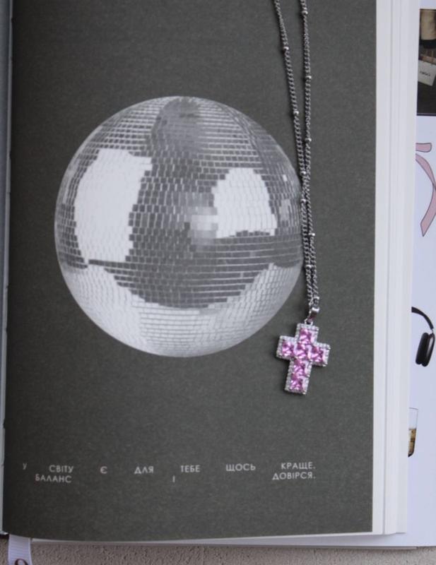 Крестик с розовыми фианитами На цепочке 40 см Медицинская сталь