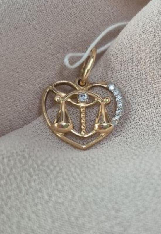 Золота підвіска 585 проби знак зодіаку Ваги із вставками куб. Цирконію білого кольору, вага виробу 0,83 грами.