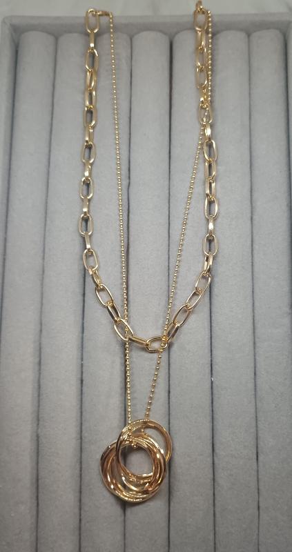 многослойное колье с подвеской в виде переплетенных колец