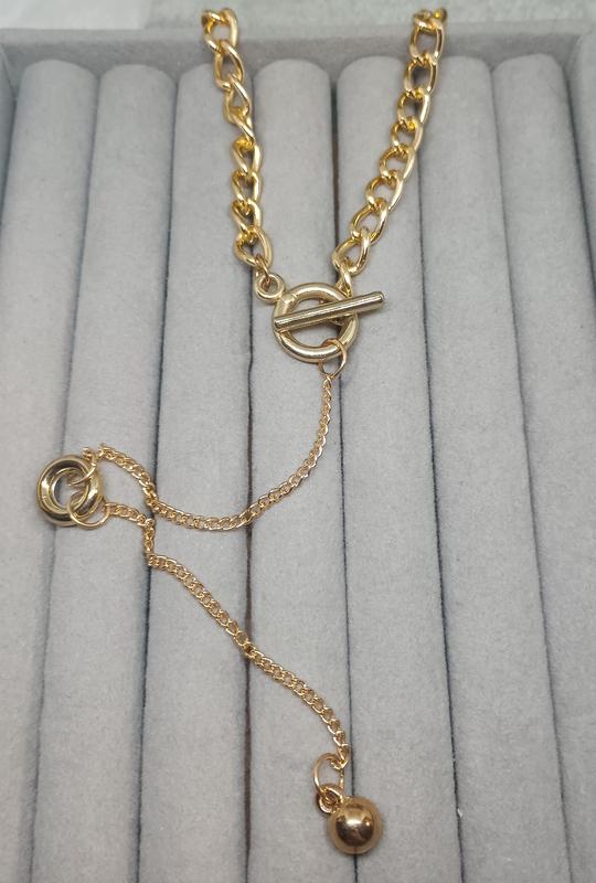 Золотой колье-чокер с массивной цепью, застежкой-тоггл и подвеской в виде шарика