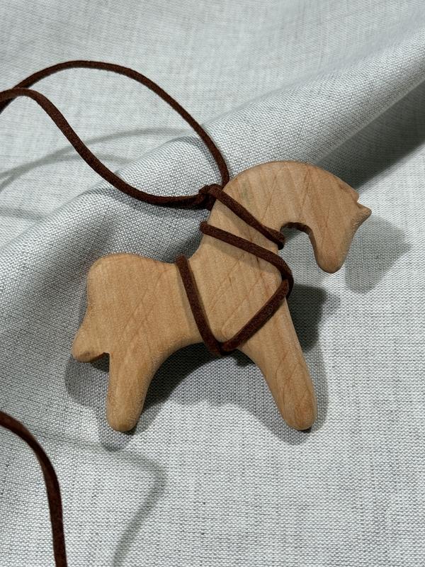 Підвіска зроблена з дерева у формі Коника. Розмір ширина 7 см. Підвіска оброблена водовідштовхувальною рідиною масловоском. Довжина шнура регулюється на завʼязку.