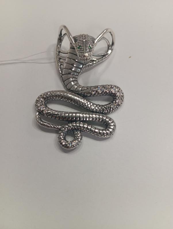 Серебряная подвеска Кобра Серебро 925 пробы вес 17.50г Вставка камешков цирконы Длина 55 мм Ширина 38 мм Ушко потайное Производство Украина