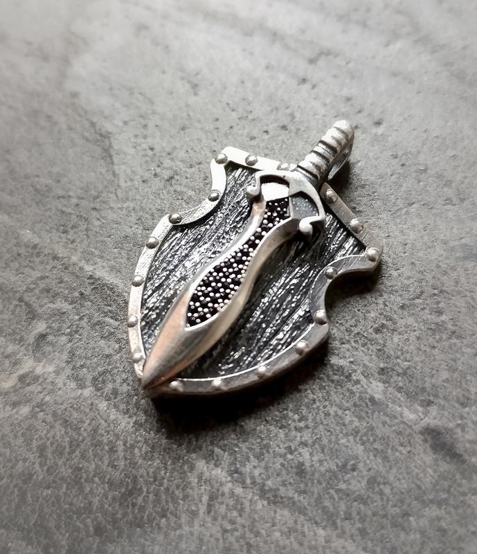 Подвеска серебряная "щит с кинжалом" пржкн-чц2