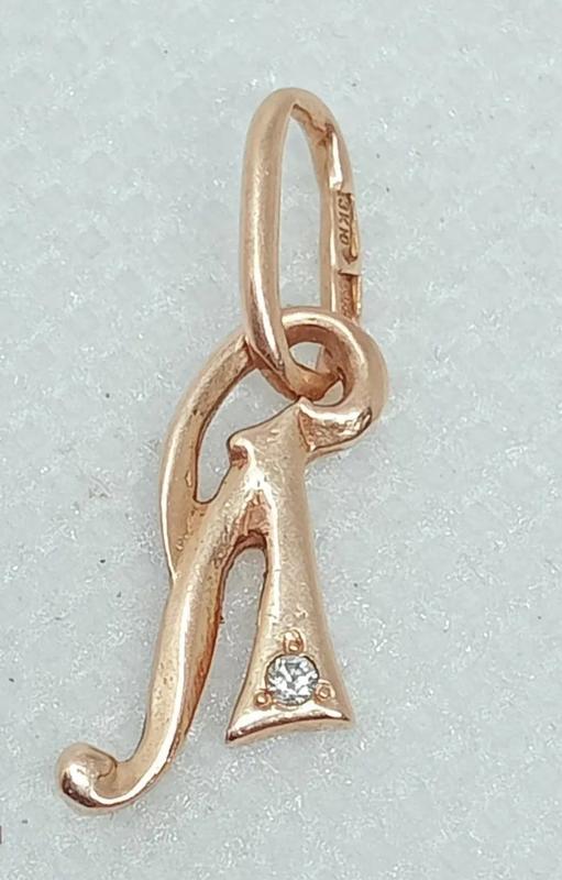 подвеска в виде буквы ,,Л,, с вставкой циркония. 585 проба. 0, 720 грамма.