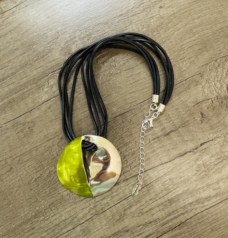Колльє, підвіс, кулон на шию. Матал, шкіряний шнурок.