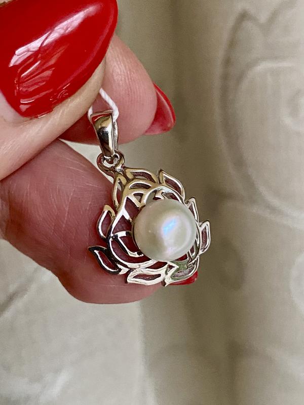Новий цiкавий срібний підвіс кулон з природньою білою перлиною. Срібло 925 проби родійоване, вигляда як бiле золото. Дiаметр перлини 7 мм, а висота самого пiдвiсу 24 мм. Фото знято при денному освітленні, без спалаху та сторонних програм. Маю ще багато цікавих та оригінальних прикрас) Всі мої речі та аксесуари якісні, покупкою залишитесь задоволені) За необхідності зроблю Вам додаткові фото та з радістю відповім на всі Ваші запитання)