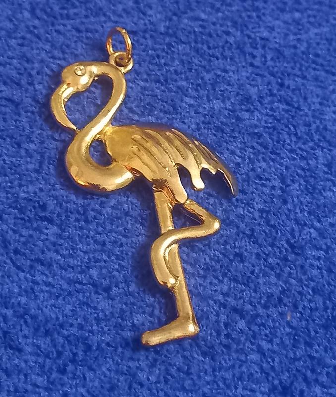 Крупная, выразительная подвеска в золотом тоне. Восхитительный фламинго. Качественная, тяжелая, литая. Винтажная классика. Состояние - очень хороший. Размер - 6,5*3 см. Винтаж - 90- те. Америка.
