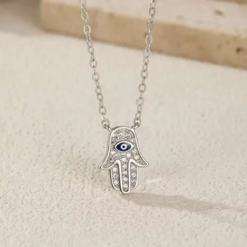 Новое колье-оберег от сглаза "Хамса". Вставки - фианиты, эмаль. Длина цепочки 40 + 5 см. Вес 2.2 г. Спрашивайте, предоставлю всю необходимую информацию