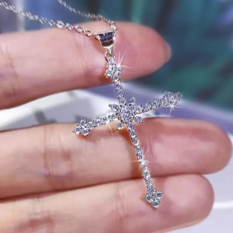 Крестовик с фионитами на цепочке. Длина цепочки 40+5см Размер крестика 2,5×4см