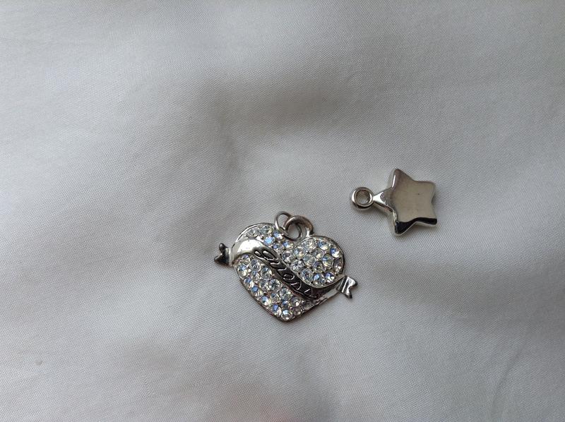 Підвіска GUESS. Виконані у вигляді блискучого серця з стрічкою. Розмір : 2.5 см*2 см Підвіска "зірочка" і замочок діючий в подарунок.