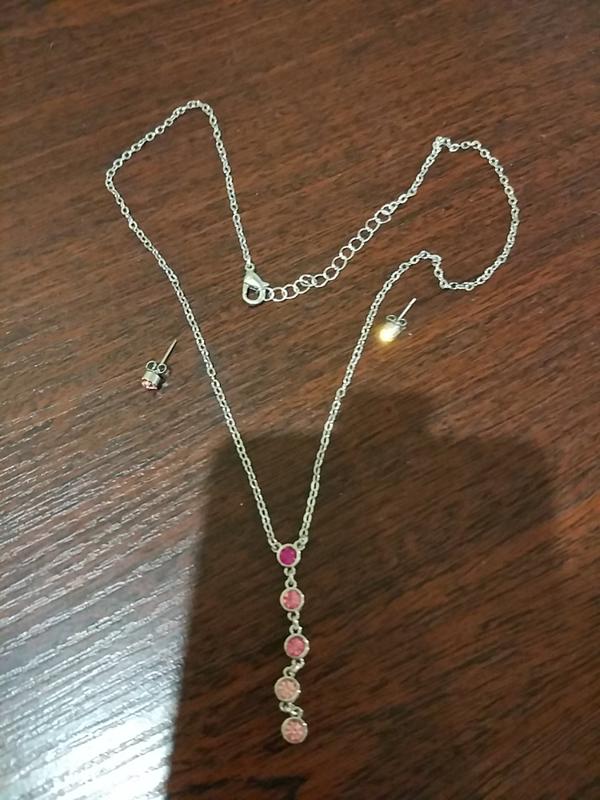 Підвіска з кулоном, гвоздики-сережки, браслет. Основний матеріал:латунь