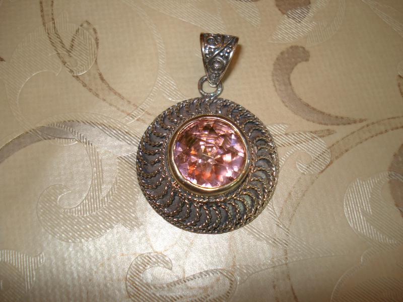 Срібний кулон з рожевим топазом, проба стоїть на виробі
