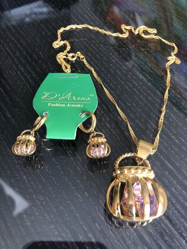 Підвіска та кульчики будуть відмінним подарунком , всередині кристали блідо рожевого та фіолетового кольору