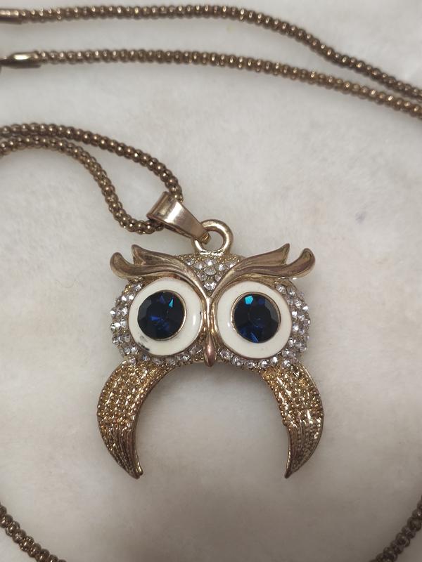 Продам, очаровательный кулон в виде синеглазой совы,на длинной цепочке.Кулон привезен из Англии,в хорошем, винтажном состоянии.Пересылаю.