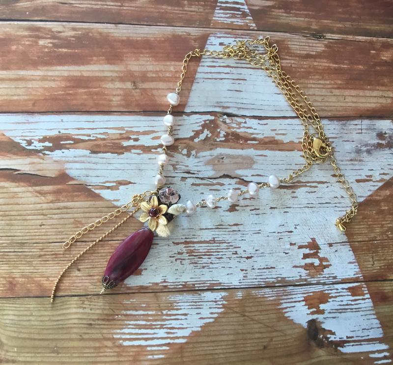 Цепочка кулон подвеска цвет золото натуральный жемчуг