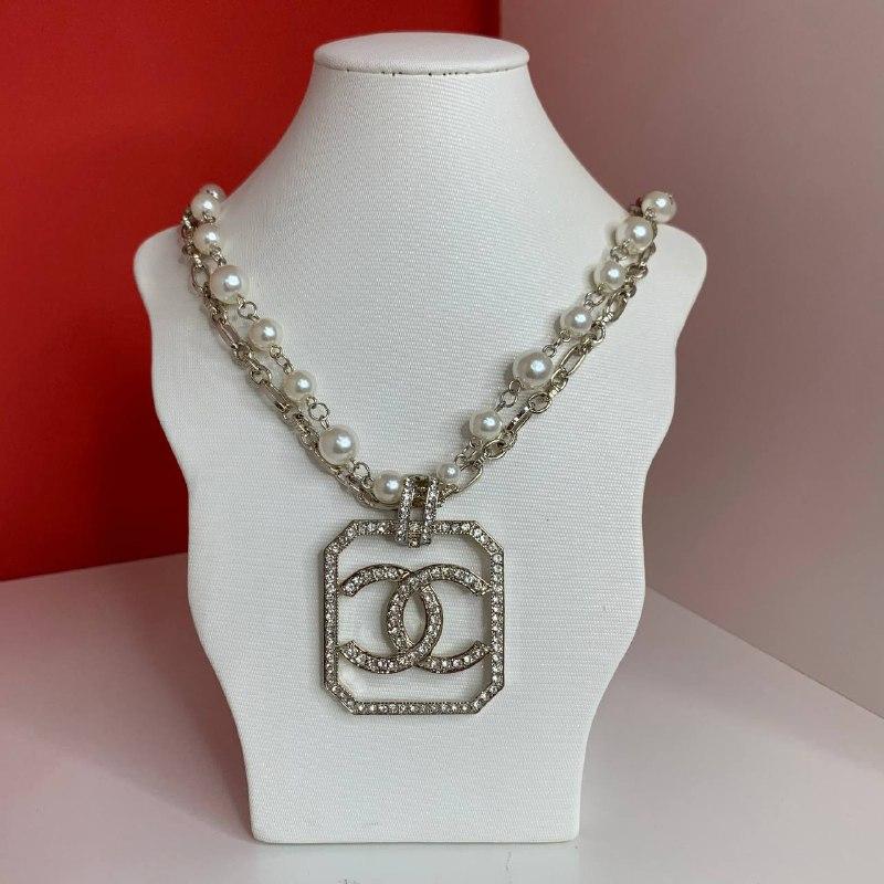Ожерелье подвеска с жемчугом и большой подвеской логотипом