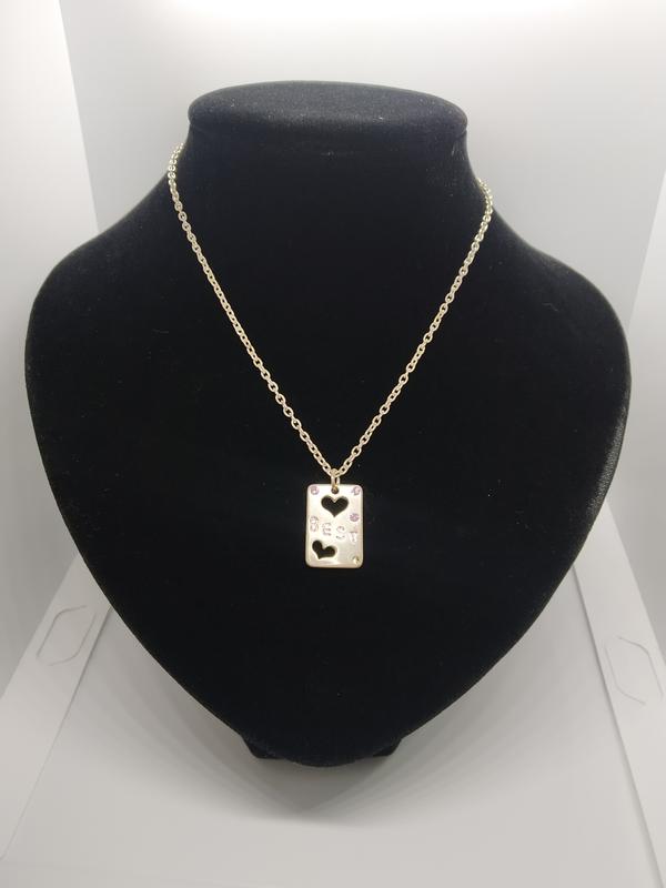 металлическая цепочка с прчмоугольной подвеской подвеска украшена стразами, внутри вырезано два сердечка длина цепочки 38 см подвеска 14мм*20мм