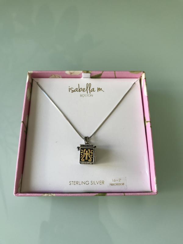Срібний ланцюжок з підвіскою у формі коробочки. Срібло 925-ої проби (sterling silver). Коробочка на замочку, відкривається, можна щось покласти всередину. Довжина підвіски 16 дюймів (40,6 см) + подовження на 2 дюйми (5,1 см). Куплено в США. Прикраса нова, з етикеткою.
