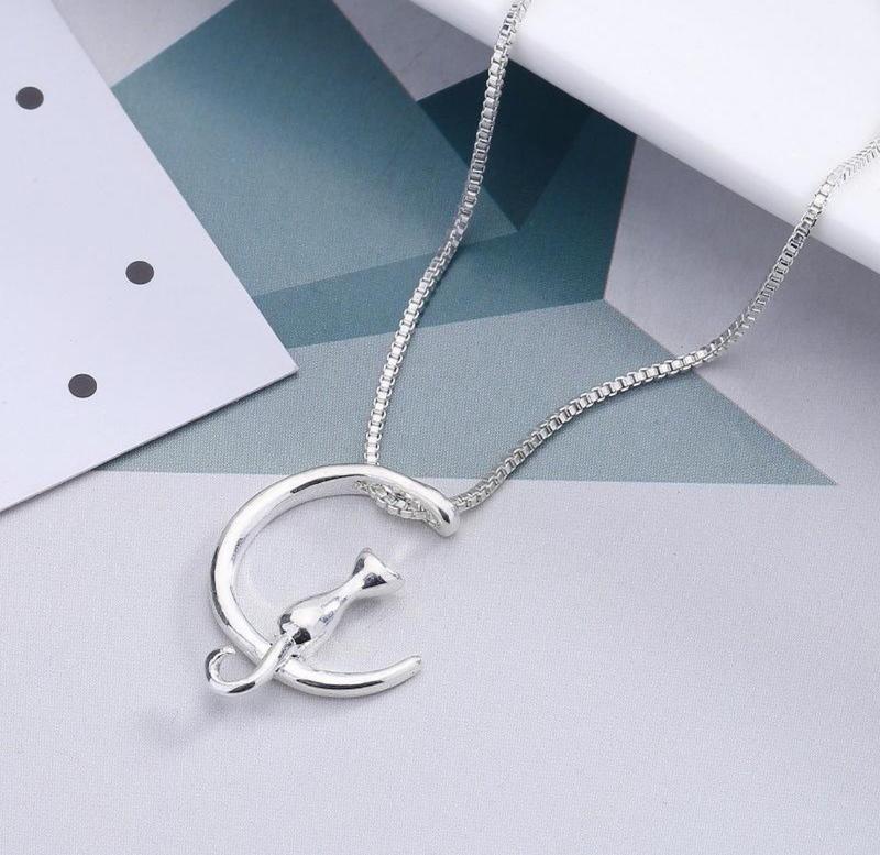 Кулон з кішкою на місяці Довжина ланцюжка - 50 см Матеріал - стерлінгове срібло