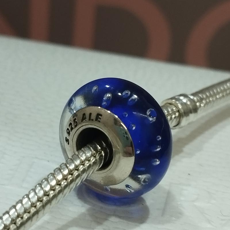 Абстрактный серебряный шарм из муранского стекла королевского синего цвета и фианитов Металл: серебро