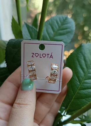 Круті сережки з медичного золота з білими фіанітами (куб. цирконієм). Не чорніють, можна мочити. код 1010