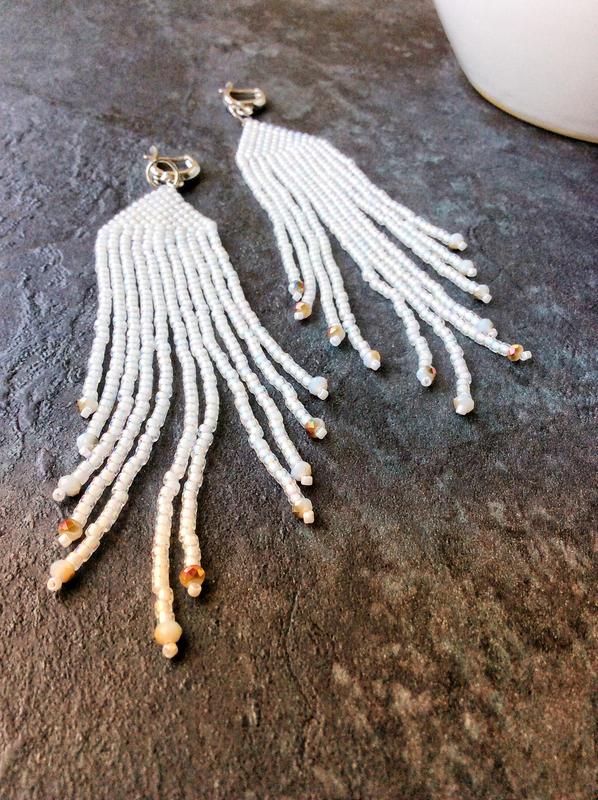 Білі сережки з бісеру