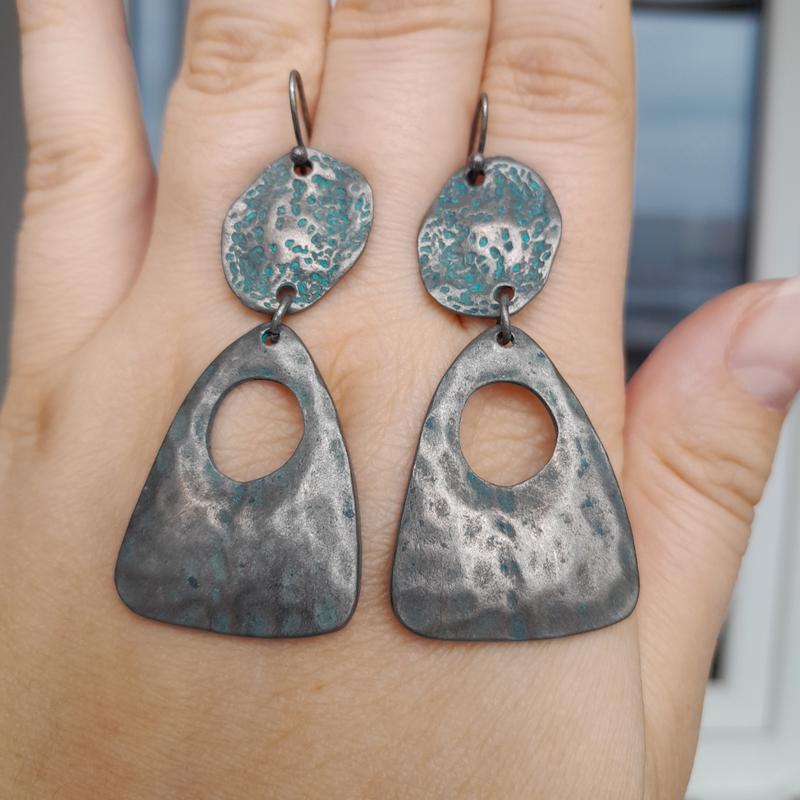 Стильні оригінальні сережки з патиною в бохо етно стилі Довжина 6 см.