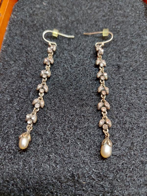 камінчики маленькі, але виблискують. перлинка капля, навряд чи натуральна, хоча все може бути. довжина близько 7 см