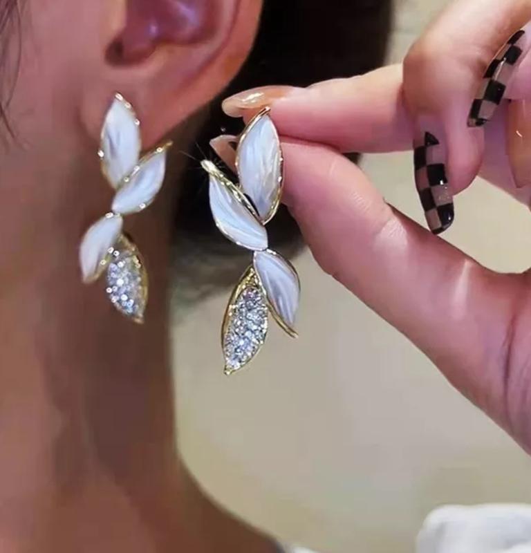 Симпатичні сережки у вигляді листочків із стразами. Матеріал біжутерний сплав. Застібка: цвяшок.