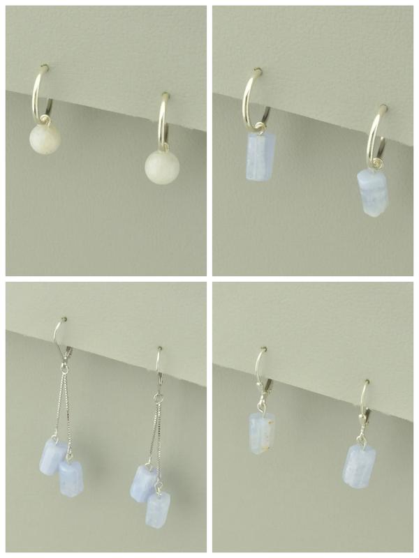 Сережки зі срібла з місячним каменем та сапфіринами срібло 925 ціна 350-465 грн