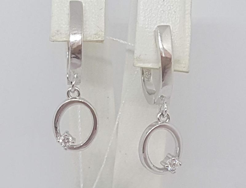 Серьги из серебра 925 пробы с фианитом, покрыты родием. Средний вес изделия - 4,41 г Вес конкретного изделия уточняется при подтверждении заказа