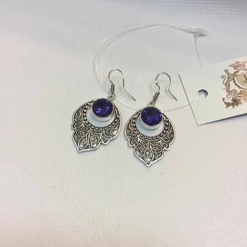 Красивые серьги с камнем аметист Индия. Металл - индийское серебро, покрытое высокопробным 925 пр Длина серег с петелькой : 50 мм. Размер камней : 10 мм. ##