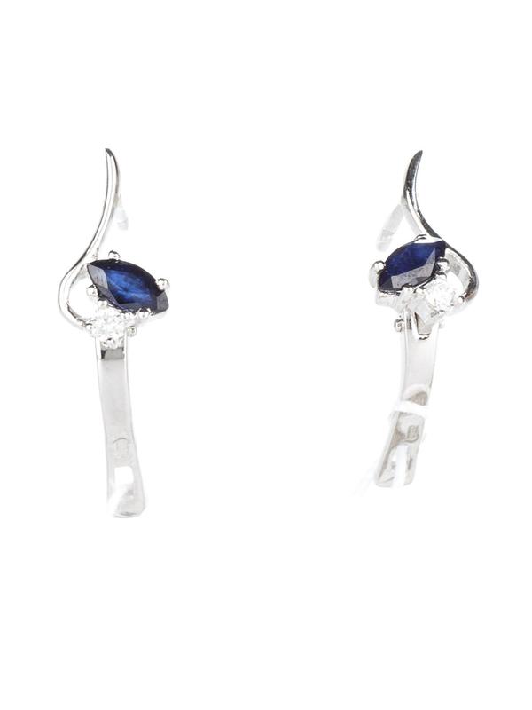 Характеристика серёг : - Металл: серебро - Проба: 925. Изделие опробировано пробирной палатой Украины - Покрытие: родий - Средний вес: 3,10-3,20 гр - Вставки: сапфир (2-1,10 ct), цирконий - Размер серёг: 15 * 8 мм - Размер камня: 7 * 3 мм