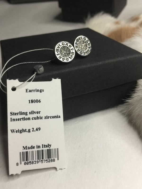 Серебряные серьги серёжки пусеты гвоздики круг круглые с логотипом булгари bvlgari с камня...