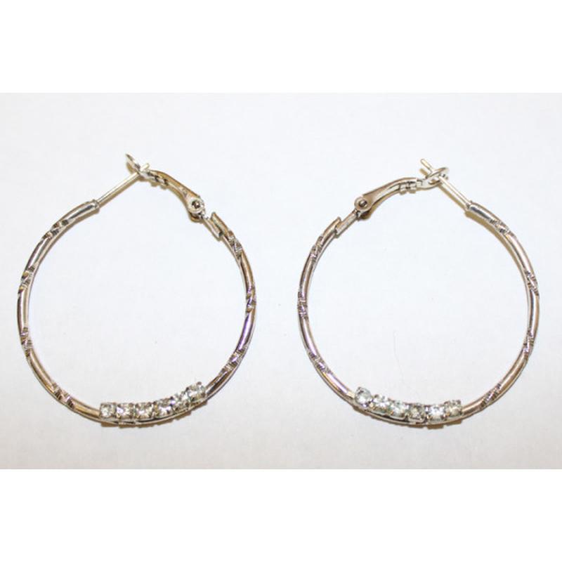 Серьги из белого металла с камешками Примерный размер: 3,5 х 3,5 см