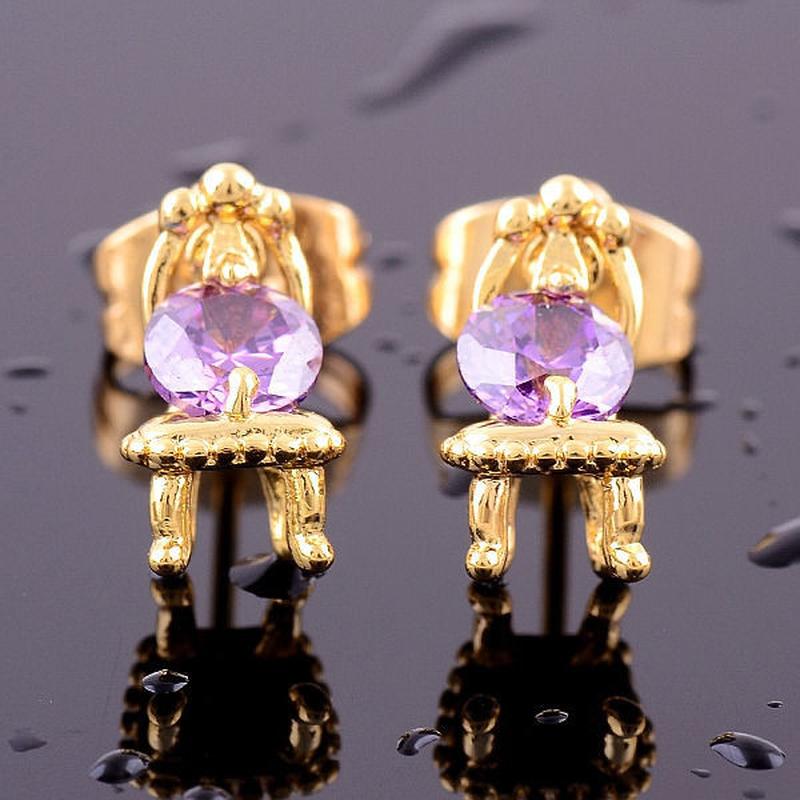 Серьги-гвоздики из желтого металла со стразами. Примерный размер: 1 х 0,5 см