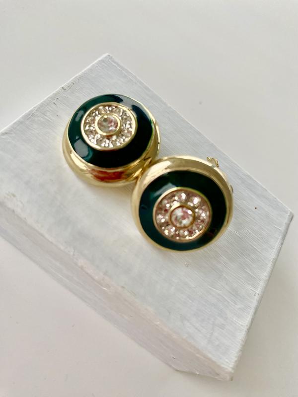 шикарні кліпси, метал золото, камені , обод темно зелений, тавро ❗️оплата повна на карту продавця, беспечноі оплати та після плати немає, робіть покупку обдумано обмін та повернення немає❗️